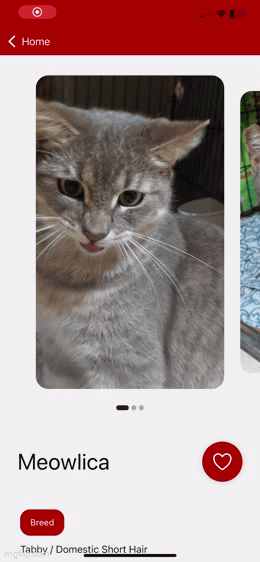 In the animal profile page, users can hit like button to save the animal in their liked list for further consideration.